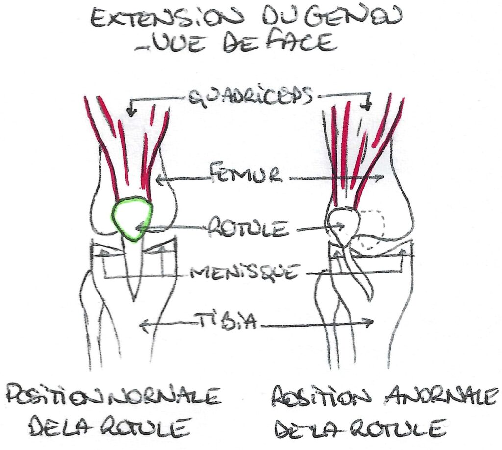 En plus de ce « trou » = trochlée, la rotule est maintenue de manière passive et active, avec les ligaments latéraux et le muscle quadriceps.